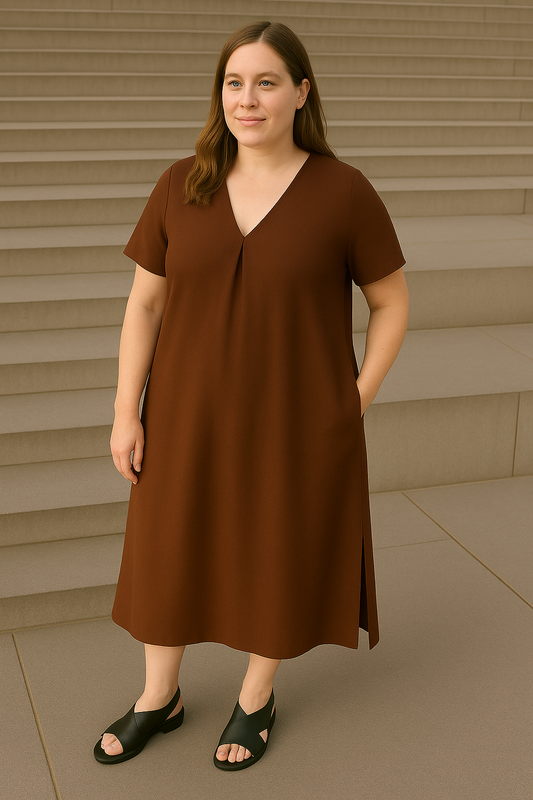 PAULINE | Robe Décontractée à Col V – Coupe Ventre Flatteuse