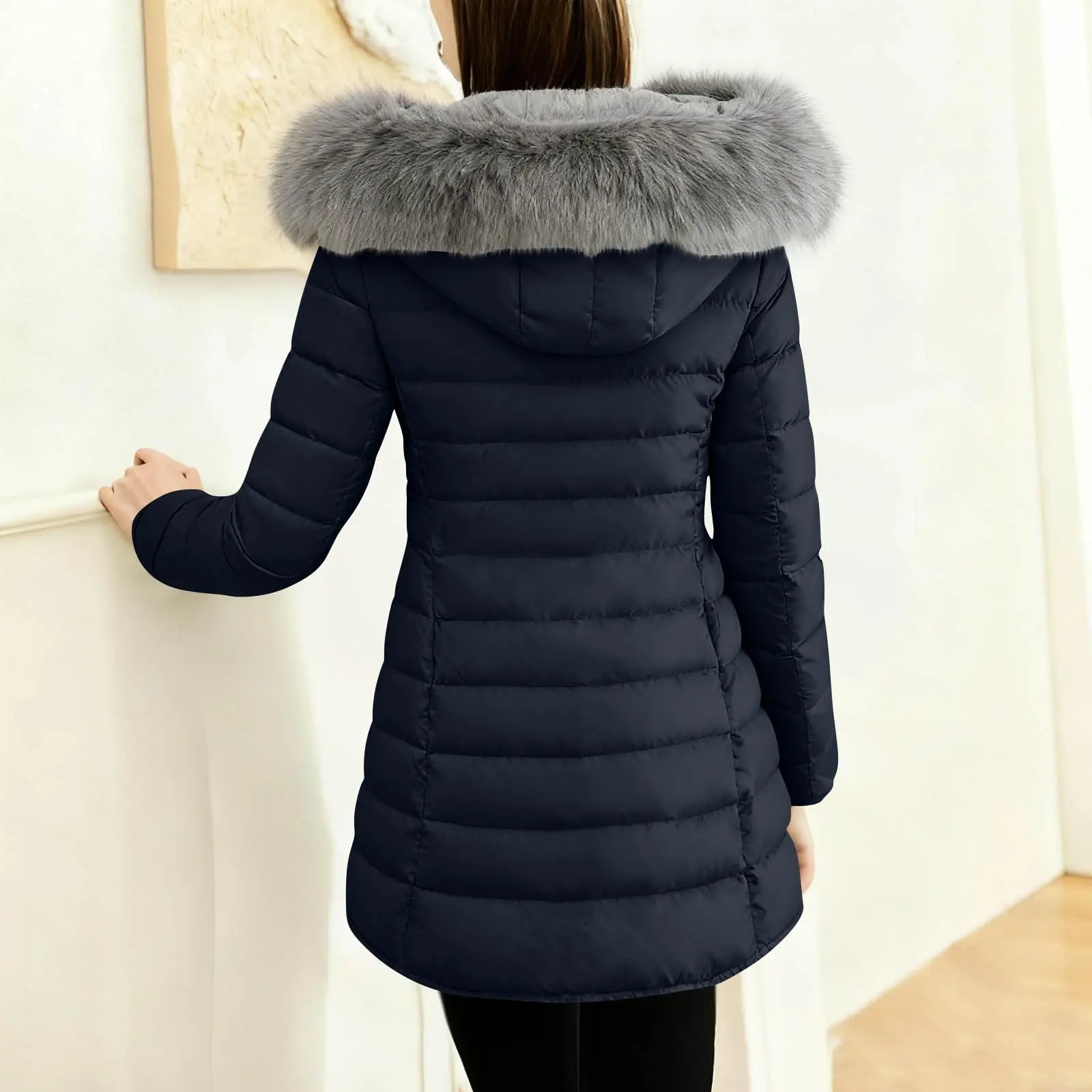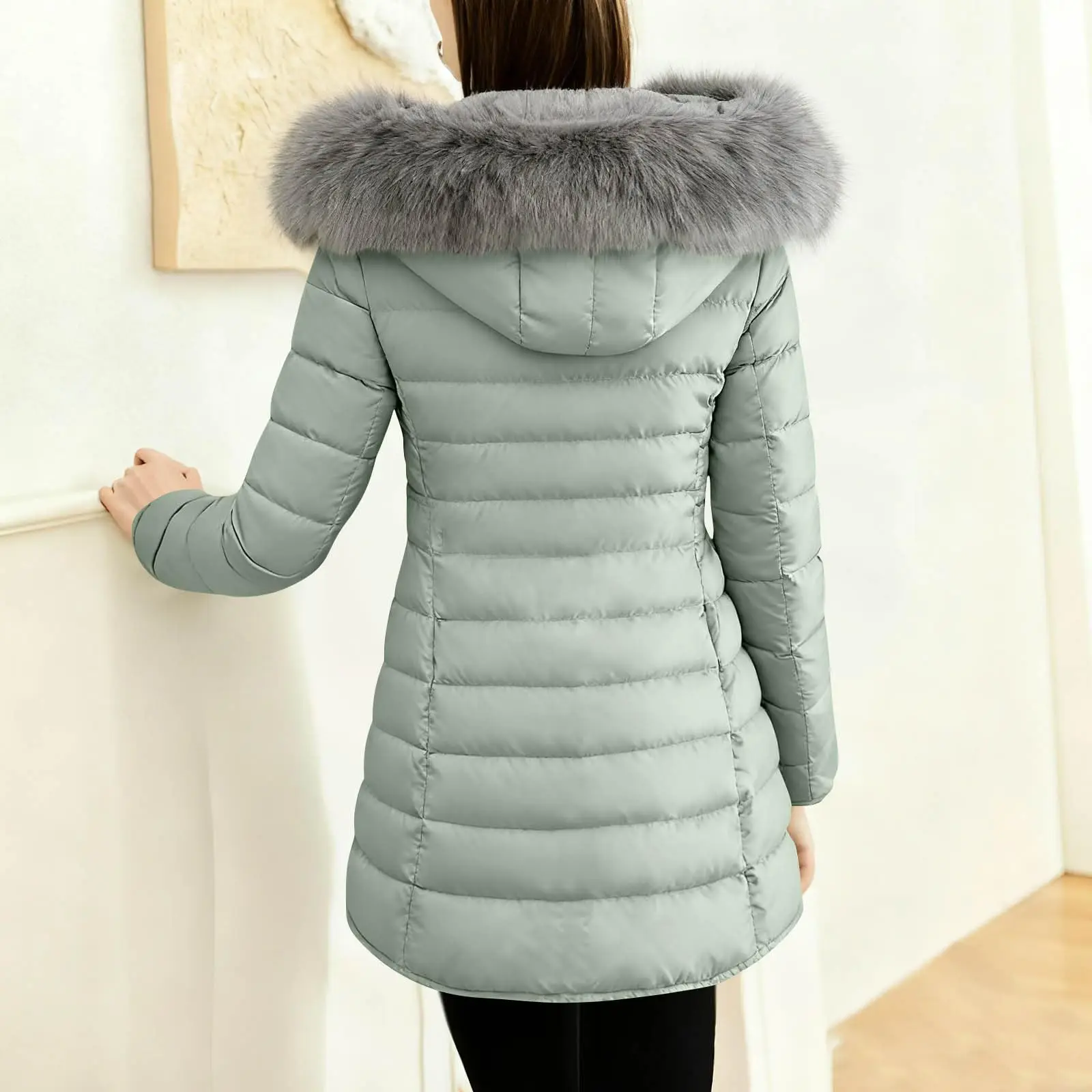 Women's Winter New Coat Solid Long Sleeved Hooded Zipper Cotton Jackets Thickened Warm Cotton-Padded Coat Detachable Fur Collar